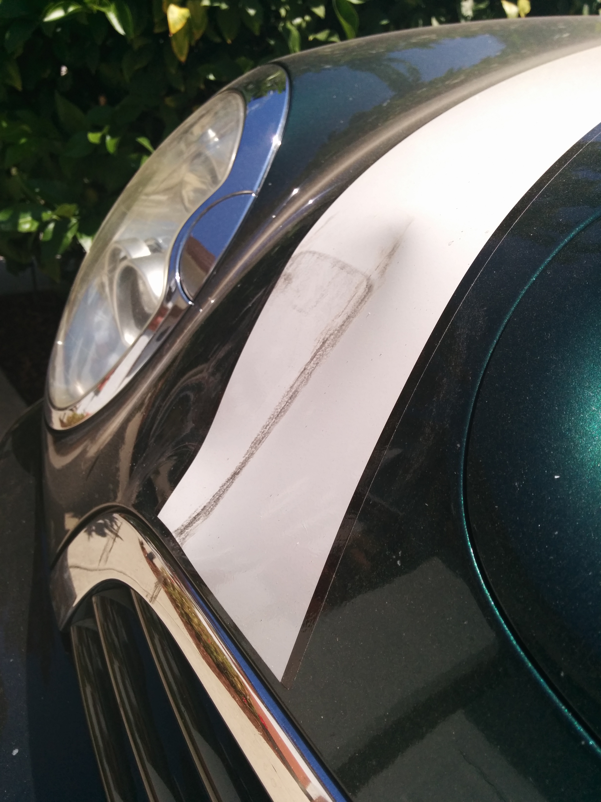 Services Performed: Sister was driving the Mini to School and accidentally nailed a bollard while on-ramping to I80 in a construction zone. Dented in the bonnet. Hired paintless dent removal expert to work the dent out since it wasn’t creased. Perfect repair.