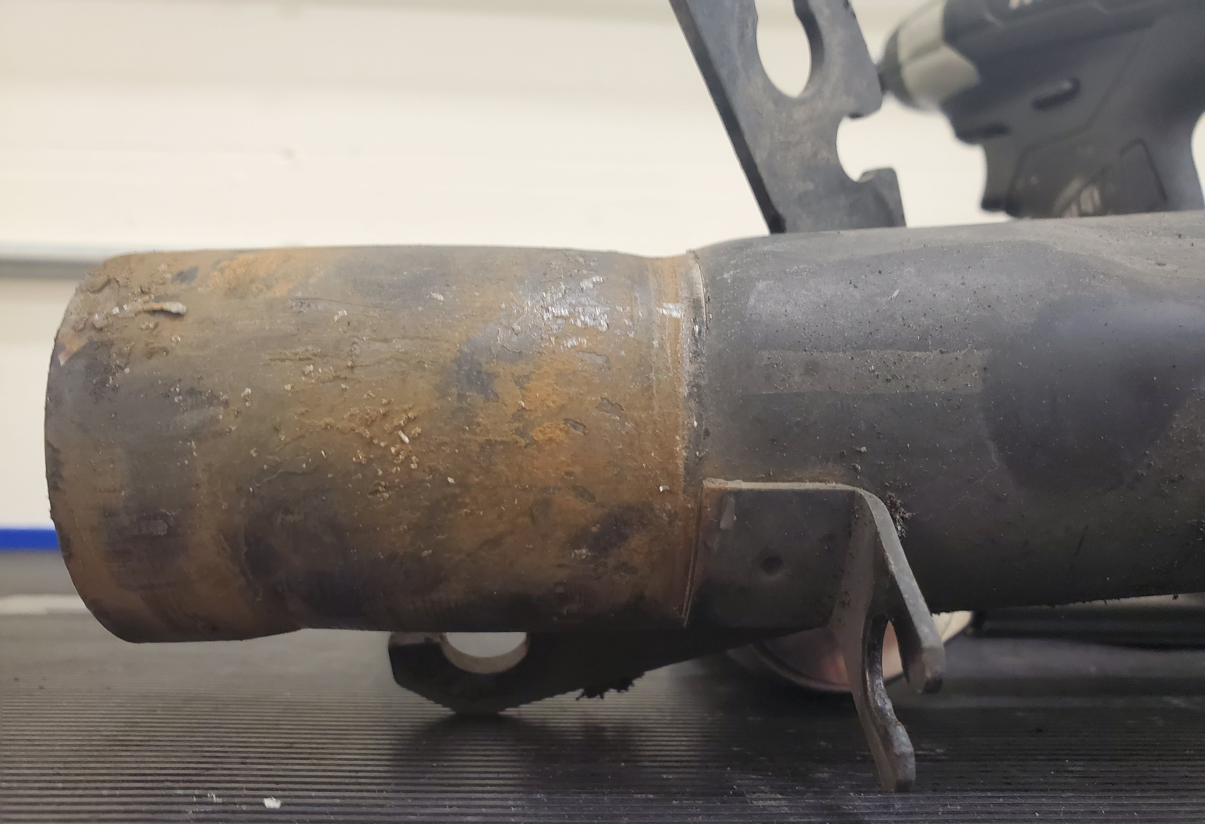 - Inspection found that the RR exhaust hanger was broken off. Ugh.