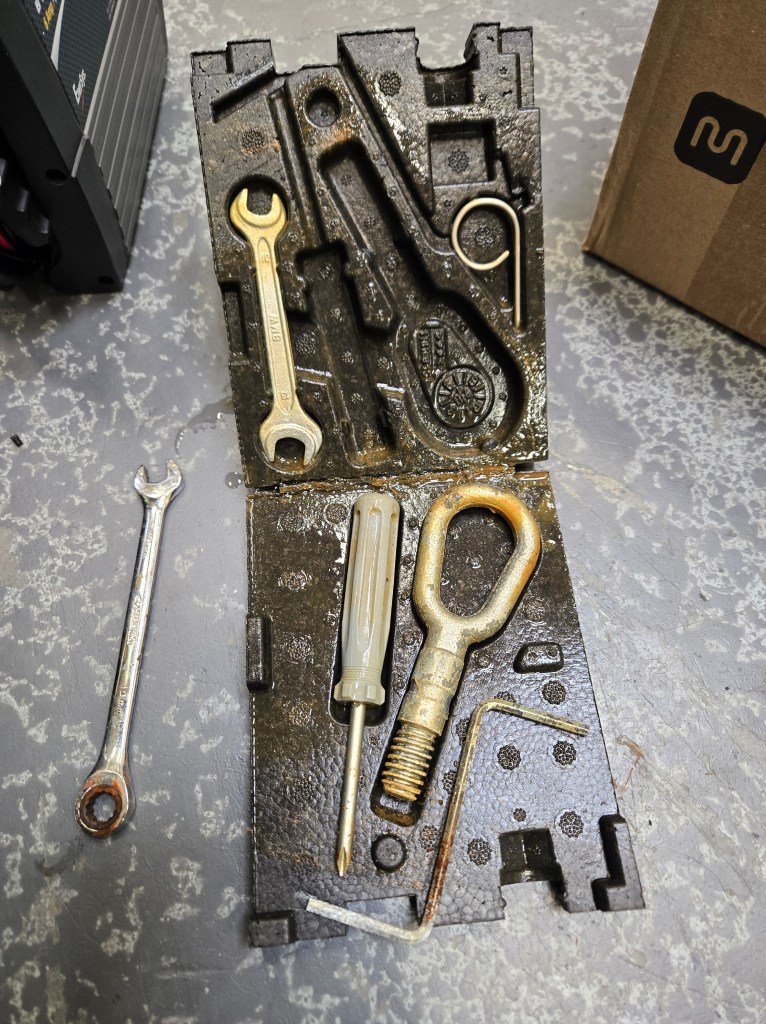 - Cleaned the water mung off the foam tool kit as best I could. Not perfect. Had been soaking for some time.
