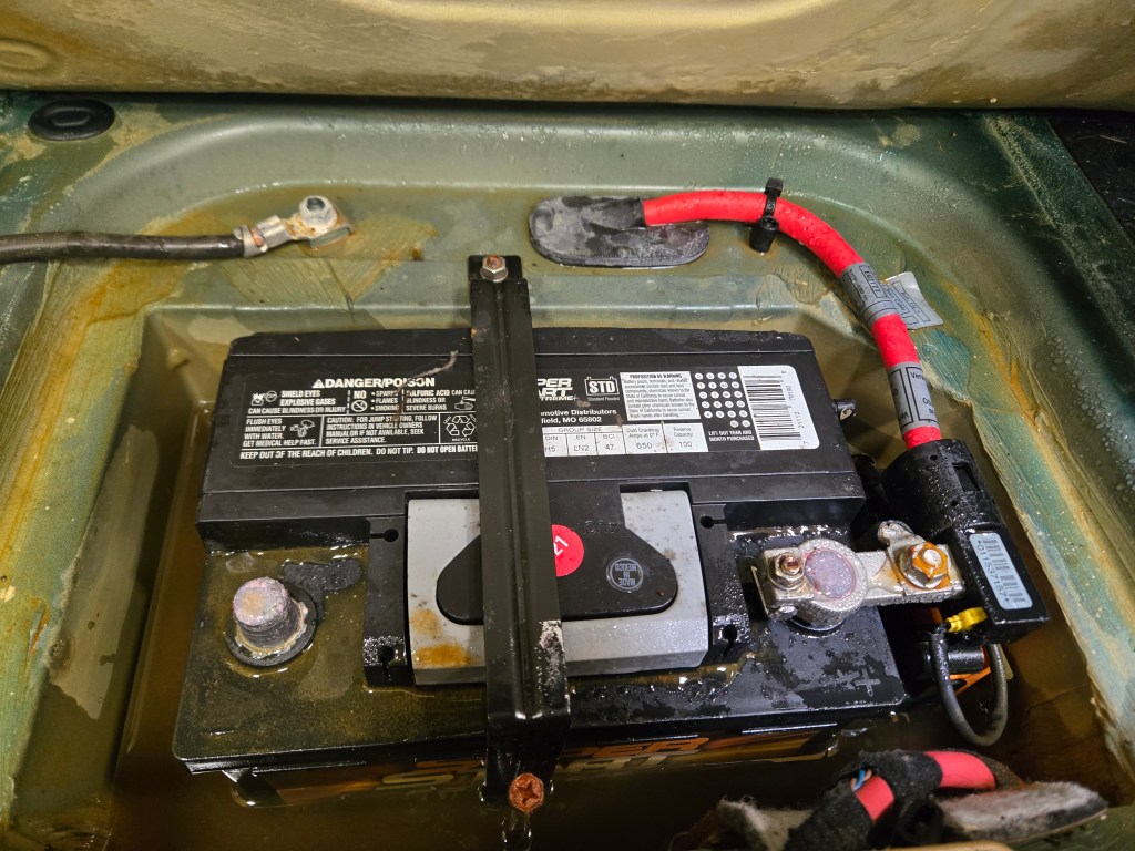 - Removed the positive battery fusible link assembly, dismantled and dried out, then buffed off the minor copper corrosion that had began. Reassembled.