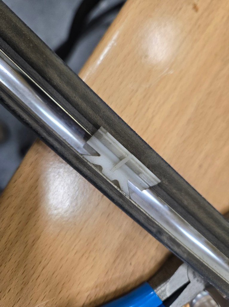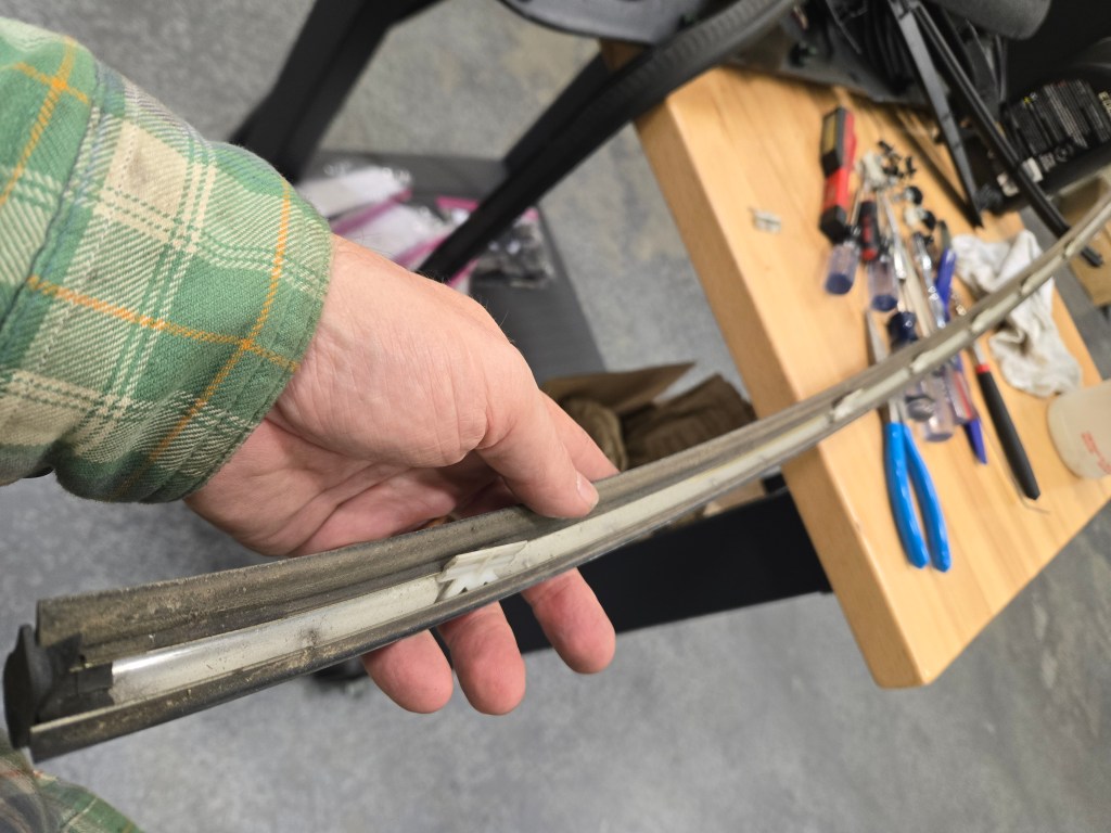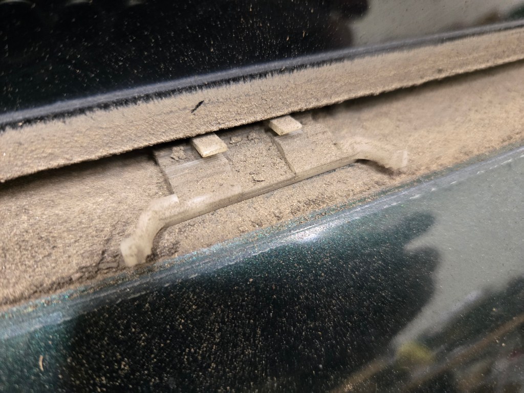 - Installed the new clips, and left the best remaining two of the originals. Was a witch to get the left most two to seat. BMW Mini had set the window glass slightly too low. Each of the new clips had a tiny bit of gasket material under it to try and seal the hole. Still woeful.