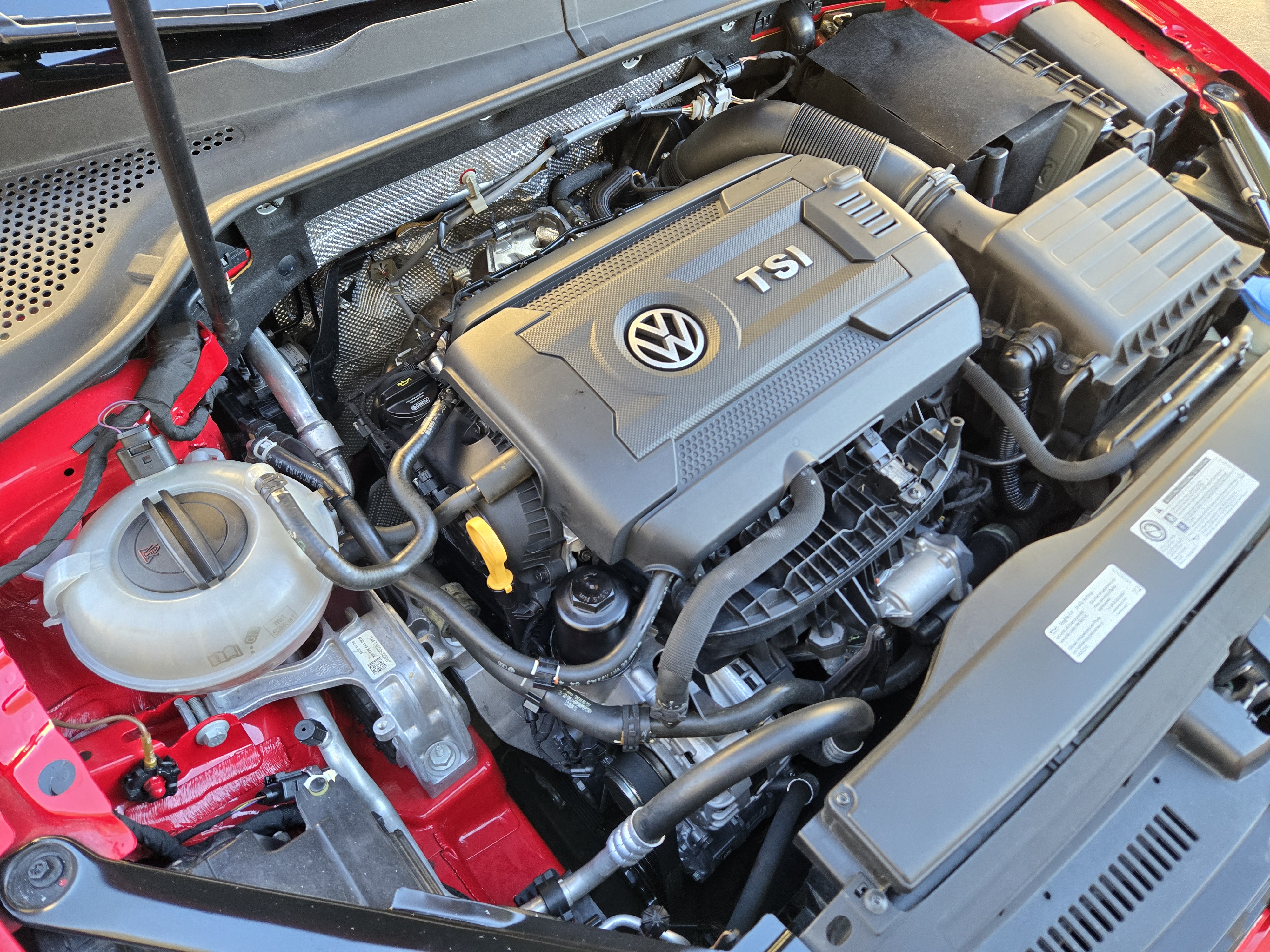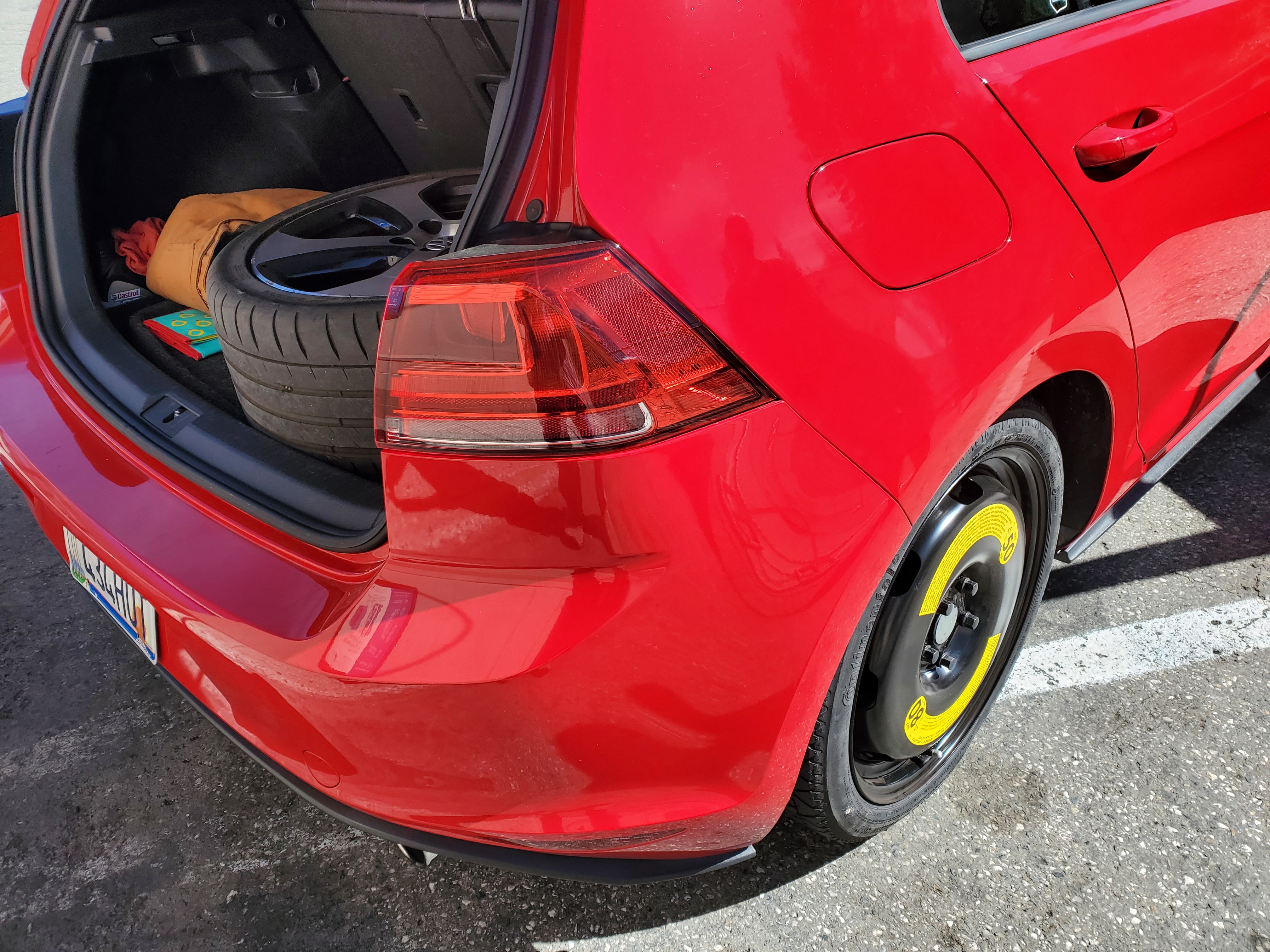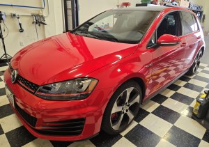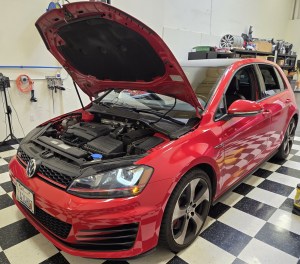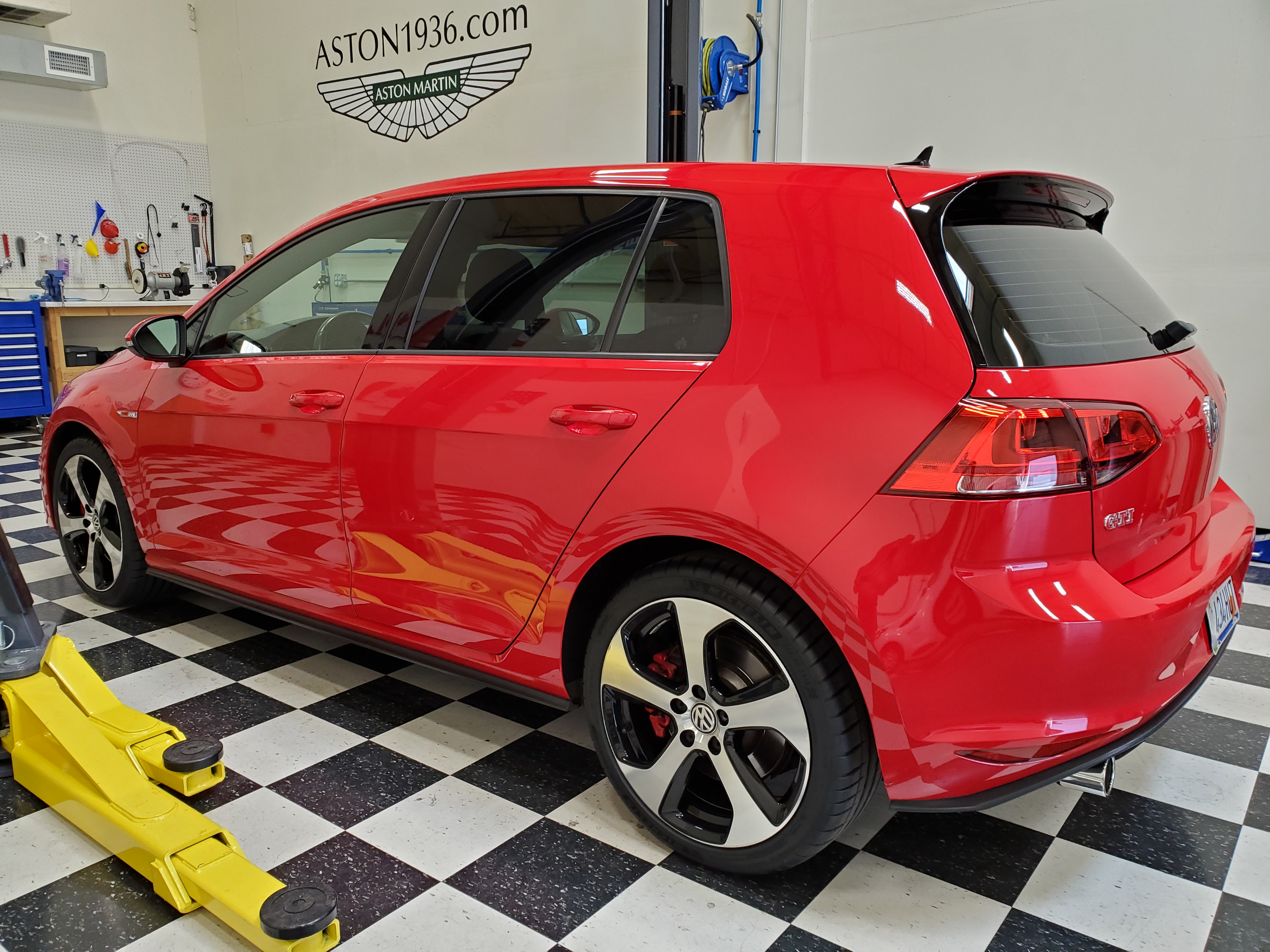 Services Performed: 2 year/20K Service performed. This was likely our last major service while under warranty and we combed over car. Oil and Filter Change (5W40). Warranty issues addressed. Oil seep was seen near front top of engine and valve cover. Camshaft housing reinstalled, Chain housing reinstalled. We’ve been slowly losing coolant level, and a slight coolant smell was evident as the car was parked. They inspected, and then removed and reinstalled the water pump and thermostat housing along with a new thermostat. Gear shift knob had a crack in it – they replaced it. The ‘GTI’ painted on the front red brake calipers is fading out, and they inspected, confirmed and then waived off saying it was an exterior cosmetic issue not covered. Bullshit. If the paint failed in the first three years, they’d have to fix it.