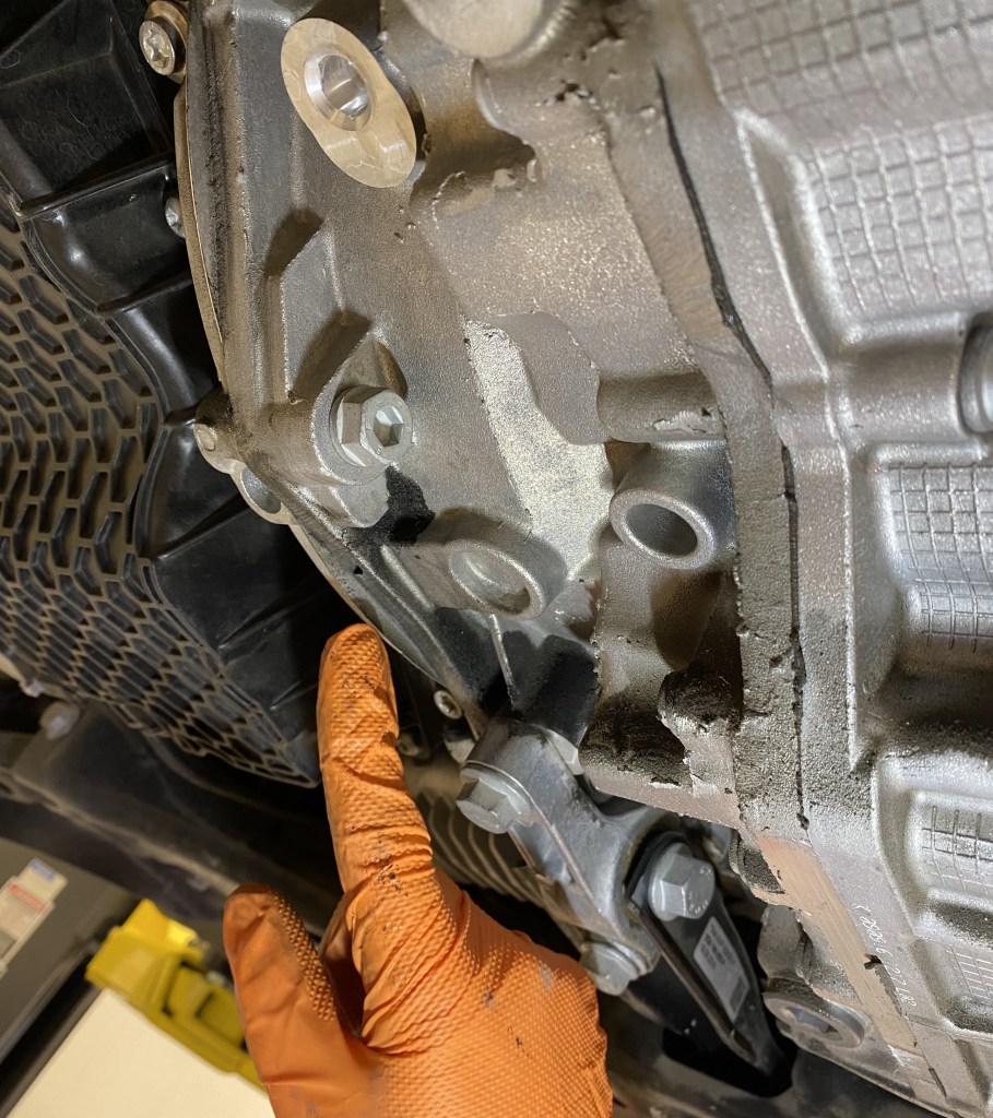 - Definitely some weep going on at what might be the front transfer case. Wet oil on three lower bolts. Verified the bolts were snug. The drain plug is above it. See photos. Need to research.