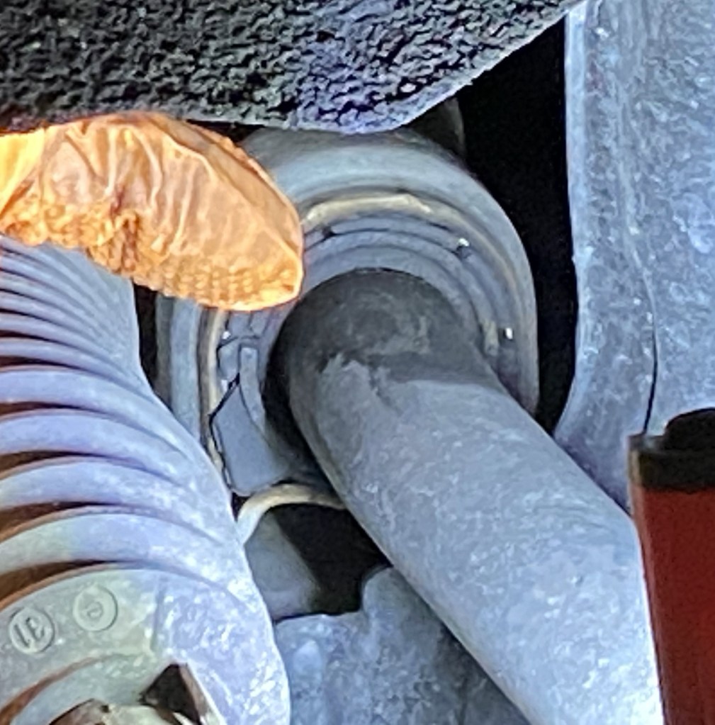 - Saw the same oily’ish film on both the left and right outboard side of the swaybar bushings. Odd place to see anything. Wondering if previous mechanics maybe sprayed a silicon lubricant on these locations and now its collecting dust/debris. Will monitor.