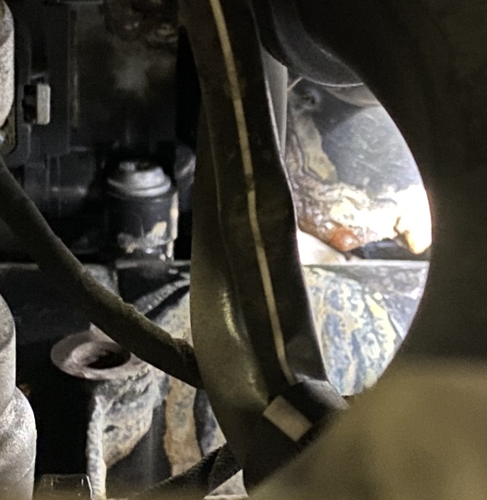 - A small amount of oil mist noticed on the lower transmission area. Blow back. Not exactly sure of source, but suspect it might be coming from the bell housing weep hole? Perhaps the rear main seal? Took some photos. Need to monitor.
