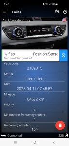 - A/C Module – B109B15 Intermittent Sensor issue with Fresh Air/Recirc door. Only 2 occurrences