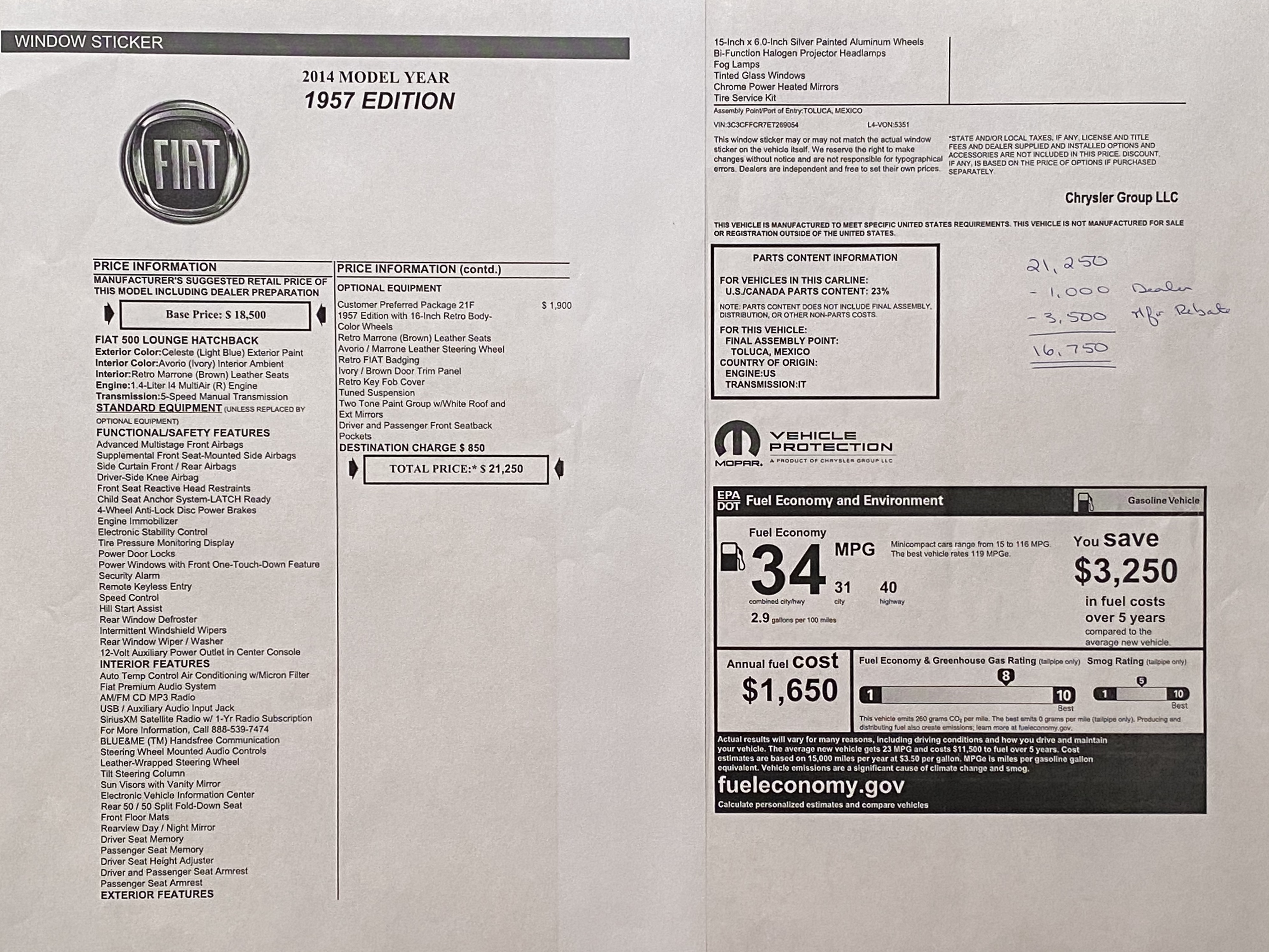 Additional Specs online here and an extensive recap of the second generation Fiat 500 over at Wikipedia here
